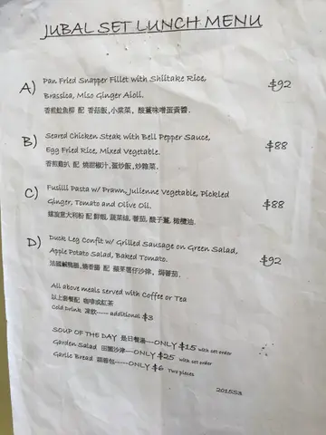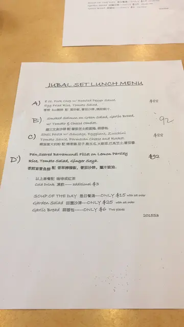At a price just above that of the chain fast-food restaurants, Jubal offers hotel-quality breakfasts. My favourite, the English breakfast with a poached egg, smoked salmon, sautéed spinach and fried potato corners, with freshly brewed coffee, is as good as any I've tasted in hotels all over the world but at a fraction of the price. One can complain about the decor, the toilet, the servers appearance (she looks senior) or even attitude after 1 visit, but after I-forget-how-many satisfying breakfasts there I cannot remember one occasion I was not caringly served. Although I'm crazy about the English breakfast, I see that the pasta set is also immensely popular - it can get sold out by about 9 am in the morning! There is a master chef behind this humble-looking restaurant, but look out for my reviews to be written about the Jubal lunch and dinner.…查看更多