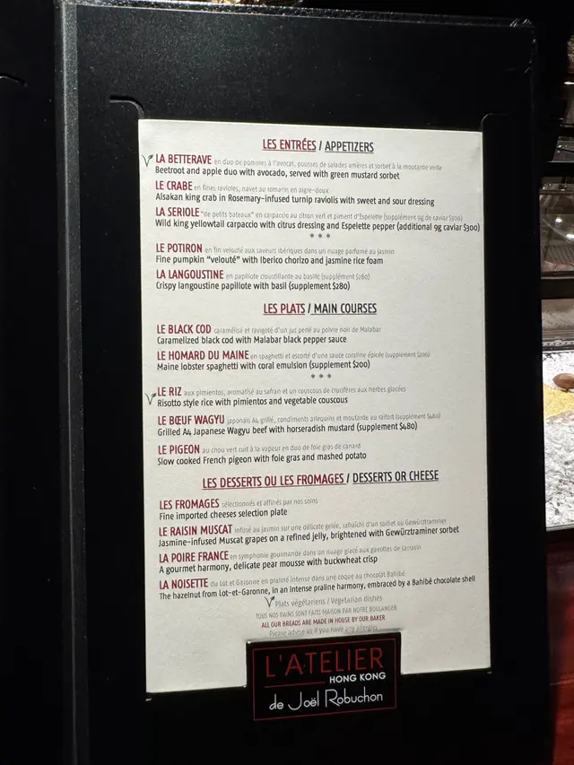 L'Atelier de Joël Robuchon (中环) 网址: https://s.openrice.com/QrLS0PuKF00 地址: 香港中環皇后大道中15號置地廣場中庭4樓403-410號舖 电话: +852 21669000