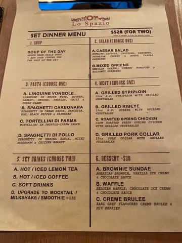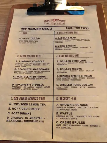 今天午餐小编来到位于恩平道的Lo SpazioLunch set由$88起,送前菜/汤及饮品小编和同事点了Mushroom Spaghetti及Salumi RisottoMushroom Spaghetti $88酱汁十分creamy意粉属于偏幼的那一种 软硬程度适中 不会太软或太硬配料有大量菌类 非常足料Salumi Risotto $88酱汁跟意大利粉的一样creamy意大利饭质感本身比较粗糙 口感粒粒分明配料有少量芦笋及Salumi块 令意大利饭更香总括而言餐厅座位距离宽躺 整体环境感觉舒适适合午餐约三五知己小聚…查看更多