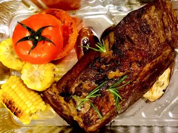 元旦日, 跟朋友聚会, 有大人有小朋友(10人), 想系屋企搞, 于是四围揾食, 决定当天外卖自取, 透过openrice 选择尼间餐厅, 先试左佢地个lunch, 觉得味道不错, 试著同厨师沟通外卖自取餐牌,厨帅细心我的需求, 有没有特别想食的食物? 有没有什么唔食? 预算多少....等问题, 隔天, 他便提供了以下餐单:法式焗田螺经典薯仔杂果沙律慢考熟成21日极黑安格斯肉眼牛扒 香草酱炒日本蚬意大利粉 烤南瓜黑松露意大利饭 法式鹅肝酿嘉美鸡 自家制木糠布丁当天取餐时, 因为早到左, 我看著厨房一盘盘热腾腾食物刚刚煮好打包给我带走, 现场看到出品简洁精致, 份量不少