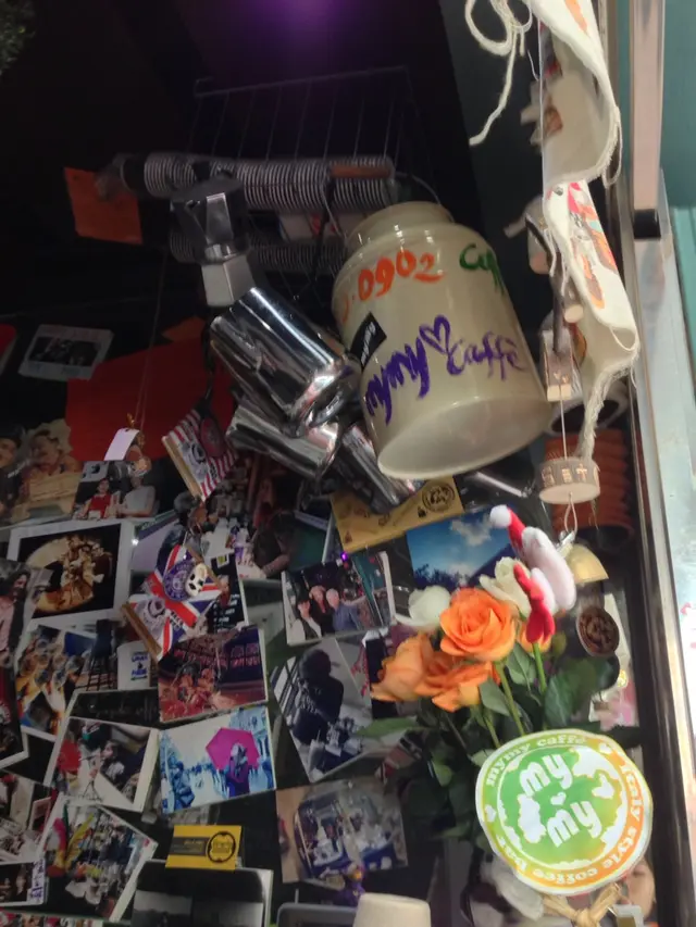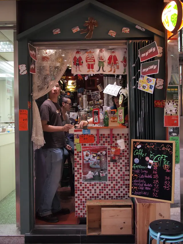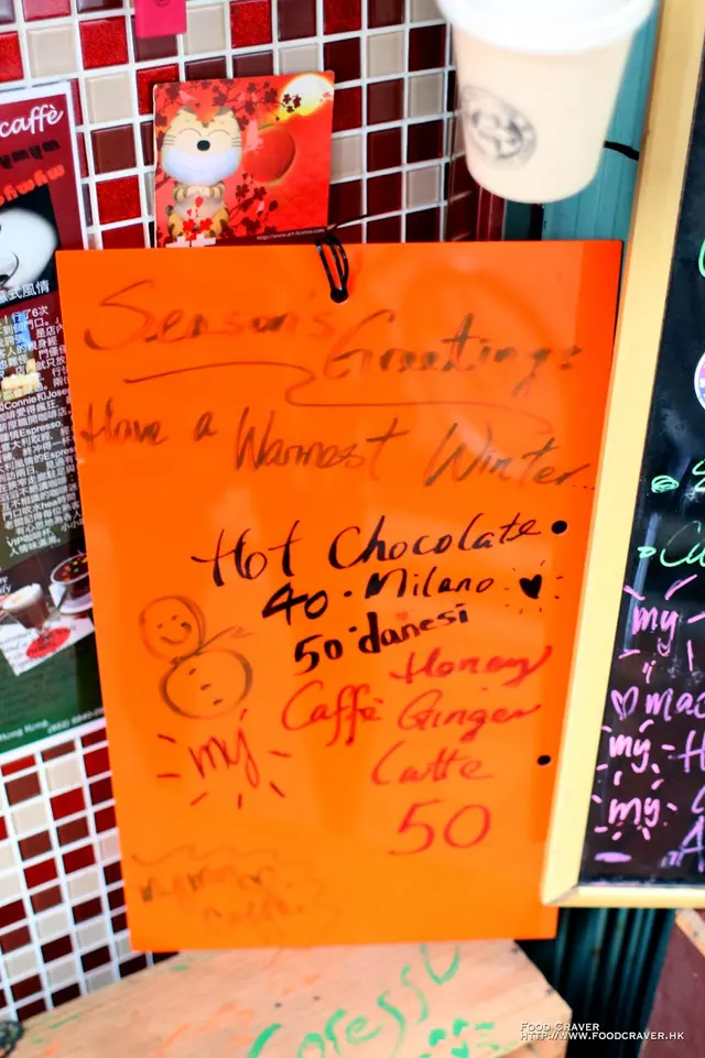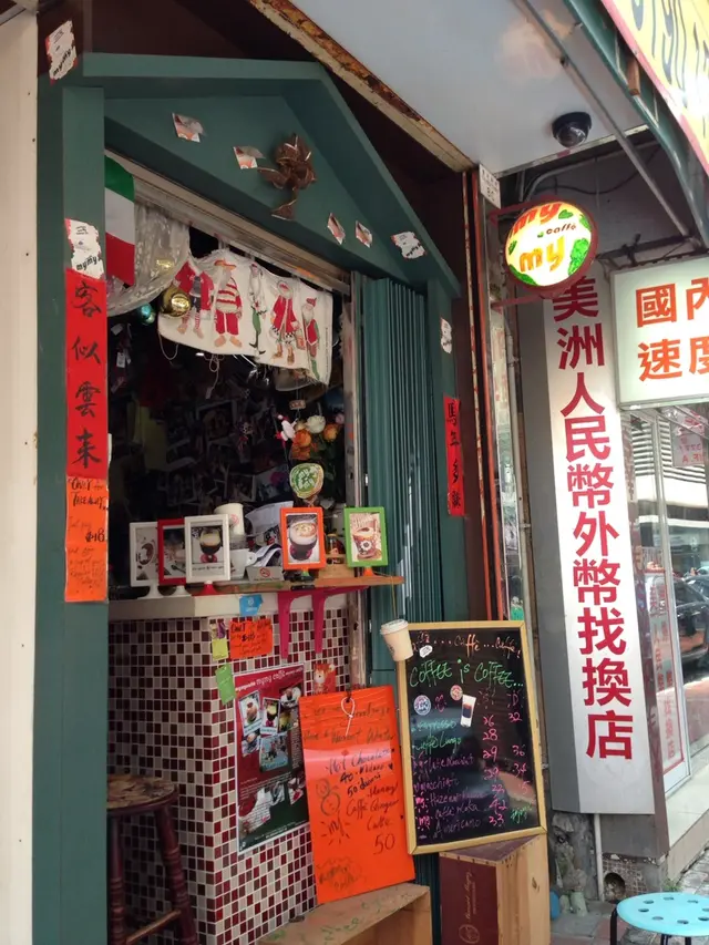 我想上環這家 Mymy Caffe 該可算是全香港最小型的咖啡店了吧?門面一不小心便會走過,但門口歐洲風的布置其實也挺搶眼的。如果要堂喝咖啡的第一個條件是要夠窈窕,不然都幾難擠得離去!另外想喝咖啡的話也要夠耐心,因為老闆娘超級慢工出細貨,顧客在門外在等咖啡的時候,少不免會跟老闆娘或者互相寒喧搭訕,所以狹小的店面內貼滿來自全球各地的顧客照片。雖然咖啡 menu 上的選擇不算很多,但只要你提出要求,老闆娘是會為你度身訂造你的私人款式。第一次來的時候是喝了 Macchiato 的,這個可不是某咖啡連鎖店的那種上面畫了糖漿的啊,真正的 Macchiato (就是意大利文 mark 的意思) 只是把一小點奶泡點在特濃咖啡上而已,當然老闆娘已經很細心地弄得很有美感啦。味道倒是比較濃的。後來事忙,幾個月都沒有再來,日前得知他們現有的丁方鋪位做到本月尾便會給東,搬到轉角更大的地方去,所以上周日就在本店開了個告別派對,我也再特地拜訪。今次不喝咖啡了,改喝很多人大讚的熱朱古力。當然又是等...等...等...等絕對是值得的,朱古力濃如朱古力火鍋裡的朱古力漿,甜香撲鼻,入口順滑,可恨那根攪棒不是餅乾條,不然用它來蘸宋古力吃也好啊!跟老闆娘和其他顧客 (好像都是老主顧了) 談起,不說不知原來這裡已經有3年等歷史了!店家也把一眾捧場客的照片製成拼圖,當中有沒有你的身影呢?Mymy Caffe 搬了上樓後地方該會大了,但可能又少了那個大家在門外「打牙骹」的情懷啊。…查看更多