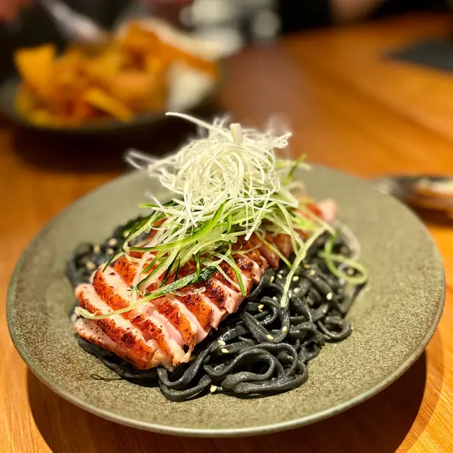 半個月內連訪三遍,看來味蕾真的被他取悅了!上述提及的是藏身於書店裡的「Noir」。喜歡待在 「Noir」舒適的空間、邊吃邊接收蕩漾在空氣裡的英日歌曲,整個人頓變得好輕,鬆弛得像肥皂泡飄浮似的。而 「Noir」的食物就如陽光折射在肥皂泡的彩虹,溫柔、不急進地打動你味蕾!你或許會說「Noir」好像缺少了 Bistro 的熱閙氛圍,我感覺「Noir」的磁場確實吸引不少二人、甚或單獨乘行,陶醉於 Modern Bistro 的食客,相信對大伙兒也不失為一個理想聚會的選點。星期一至日,「Noir」均有不同的推廣,第一次到訪是星期日,設有以 1/2/3/4小時遞減收費的 All You Can Drink,第1小時是 HK$198,而第4小時只需 HK$48,要看你的酒量而定了。不過,好奇怪愛酒的我暫時未在 「Noir」碰過酒精!意外地未碰過酒精,絕對是為了集中食力於有趣的菜式,就讓我先總結一下試過的菜式。Small Plate 的 Ebi Miso Pumpkin HK$78 可以細味出味噌、蝦高湯與及發酵應用在烹調上的美妙,So Interesting!我最喜歡是 Mayo 的處理,口感綿密、既有味噌、亦有蝦香,滋味來得平衡細緻。而底層是帶酸的發酵南瓜泥,入口𣊬間將味蕾打開,但初接觸,未必未人人會接受過來!至於南瓜不揭曉了,讓你們親自品嚐吧!Mushroom Croqutte HK$58 是另類的吉列磨菇,不過醃漬過的磨菇配上椰菜花泥,味道清怡且帶出新鮮感,炸物也可以毫無負擔!個人挺喜歡 Hamachi Crudo HK$88 的 Small Plate,混合日本刺身和秘魯 Ceviche 的風格。新鮮的油甘魚蘸上由乳酪、發酵蕃茄與及龍蒿製作、洋溢清新氣息的醬汁,非常適合炎熱夏天享用,龍蒿真的很香、很香!選用廣島蠔製作的 Kaki Furai HK$88,火喉掌控的很好,炸漿酥脆而不油,緊貼著濕潤流心的生蠔,必定獲得蠔粉的小心心。而特色就落在自家發酵過的辣醬,個人覺得發酵辣醬的風味,還可以再提升一點!Koji Dry-Aged Beef HK$318 (原價 HK$368)是星期日晚優惠的 Big Plate,以麴菌熟成 25天,牛味濃郁、牛質柔軟酥化,更附有我們熟悉的麴菌香氣。蘸上乳化大蒜享用,又是另一番風味!伴碟的千層薯,本來是加分的元素,可惜炸得有點過油!羊香與焦香並存的 Lamb Spare Ribs HK$268,首次令我忘卻了邪惡肥膏的存在。 入口酥脆的皮層夾雜香氣四溢的羊脂,單從嘴角滲出的肉汁,已叫人按捺不住。除用作減膩的薄荷乳酪,羊肋底下還呈上重中之重的Romesco 醬汁,令 Lamb Spare Ribs 變得魅力沒法擋!一旦嘗試過「Noir」的 Starch ,你就完了,因為每次也想吃。首嚐的 Clam Takikomi Rice HK$178 跟日式釜飯有近似的共通點,底層的米飯預先以 Sofrito 拌炒,更加入瑤柱佐味,而面層是連殼的鮮蜆和大量的蔥花,除蜆肉保持鮮嫩彈牙外,米飯更吸收了滿滿的 Umai,鮮美極了! Arroz De Pato HK$228 是油封鴨烤飯,侍應事先提示鴨腿會稍鹹,適合與米飯一起吃。 自家製的油封鴨腿做到外脆內腍的惹味標準,初吃鹹度是接受得來,只是鴨腿和十分芳香入味的蔥花飯多吃了,的確體會到有點鹹的狀況,但 Arroz De Pato 的香氣實在太迷人,儘管有點鹹,也會一口一口的吃過不停。噢,還有那迷人的香蔥,平日不吃蔥的,也使勁地吃!不得不承認 「Noir」三項甜品選項確實偏少,可是 Basque Cheesecake HK$78 有足夠理由令三遍到訪也鍾情的甜品。首先HK$78 的定價,包含自家製巴斯克芝士蛋糕一件、從日本訂購雪糕一球,還有富心思經過 Gin Infused 的菠蘿片、蜜瓜片和哈蜜瓜片,下午茶那次還多了一顆士多啤梨,我想這價位全香港也找不到能比較的了,更何況質量是 Up To Standard。第一次是菠蘿焦糖巴斯克配海鹽雪糕,第二次是醬油無花果朱古力巴斯克搭豆腐雪糕,第三次是醬油無花果朱古力巴斯克配海鹽雪糕。然而最滿意的是第二次,因為碰巧巴斯克還未100% 凝固,出現非刻意的軟滑流心,加上醬油、無花果與朱古力比例剛剛好,豆腐雪糕也超夠豆腐香,立即令味蕾為之躍動!個人認為 「Noir 」的晚餐 Menu 更能顯現餐廳的個性,假如想換換下午茶口味,「Noir」的下午茶套餐也是不錯的選擇,但要當心的是份量真的不少,我和老媽吃得 200% 飽,當天晚餐當然可以豁免。這是 Small Plate 的 Deadman Karaage HK$58,除四塊炸雞外,底層是椰菜和紫椰菜混合的菜絲沙律,可與炸雞一併享用,千萬不要浪費!Deep Fried Tofu Curry Rice HK$88 是甜香小辣的素食咖喱,老媽吃得不亦樂乎。我最愛來自日本的豆腐,炸得外香內軟,非常好吃,而炸蕃薯亦是不錯!Duck Breast Noir Noodle HK$98 的份量令我有點吃不消,最後留下一小束竹炭麵作廚餘。「Noir」麻醬的特點是完全透不出麻醬的風格,質感也較稀薄,雖然拌麵的效果不算理想,但卻沒有正常的麻醬的膩滯,更切合我的喜好,亦可盡情感受竹炭麵的香氣。差點忘記鴨胸。鴨胸皮帶有焦香,粉紅鴨肉非常細嫩帶輕鹹,是鮮有我喜歡的鴨胸。差點忘記鴨胸。鴨胸皮帶有焦香,粉紅鴨肉非常細嫩帶輕鹹,是鮮有我喜歡的鴨胸。下午茶套餐包含 Spicy Passion 的熱薑茶或其他茶種。而 Nutty 風味 Hand Drip Coffee ,需要多補 HK$20。感覺不過不失,不過份量挺多,可以慢慢嘆!延續未嚐的 Bistro 菜式,以及餐酒,總之仍然期待第四次的來臨 !…查看更多