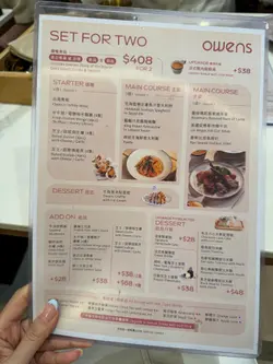🍽️太子Owens人气爆灯!午餐丰富精彩⭐️纽西兰牛扒+人气甜品大满足😋聚会推介,打卡靓位CP 值满分真系近期太子区最火热必揾美食呀!✨一入店就感受到暖笠笠气氛,木系装潢又时尚又舒服,打卡影相劲靓!无论同朋友聚会,定系一个人chill下都超啱~📸菜单选择真多!甜品超有名,每款都好吸引,真系令人忍唔住全部想试晒。今日我份午餐都够晒丰富:午餐套餐跟汤或沙律,再跟餐饮,仲可以加order人气甜品,好爽!纽西兰顶级肉眼牛扒配薯条同蔬菜,牛扒肉味浓郁,肉质juicy又有弹性,色香味同新鲜感全部爆晒灯,真系邪恶又好味!烤鸡扒全日早餐,都好正!有齐烤鸡扒、啡菇、法兰克福肠、烤蕃茄、炒蛋、哈密瓜、酸种面包、田园沙律,份量超足够,食到好满足~白酒煮蚬都唔可以错过,蚬肉鲜甜,酱汁好鲜味,连汤都饮埋,好开胃!甜品就真系全店焦点:朱古力心太软,外脆内流心,仲热辣辣,加埋雪糕同忌廉,绝配😍。睇住朱古力慢慢流出嚟,简直心动level💖!开心果Tiramisu,超丰富,满满开心果碎+烟韧麻糬内馅,香浓唔腻,别具特色。伯爵茶蛋糕,蛋糕底松软,忌廉唔会太腻,配埋香浓伯爵茶味同微微嘅橙香,清新又有层次。再配杯冰冻柠茶,整个lunch好完美!🧋无论系想揾地方食饭聚会定打卡影靓相,Owens都系太子必去!大家记得mark低,等你一齐嚟开餐!…查看更多