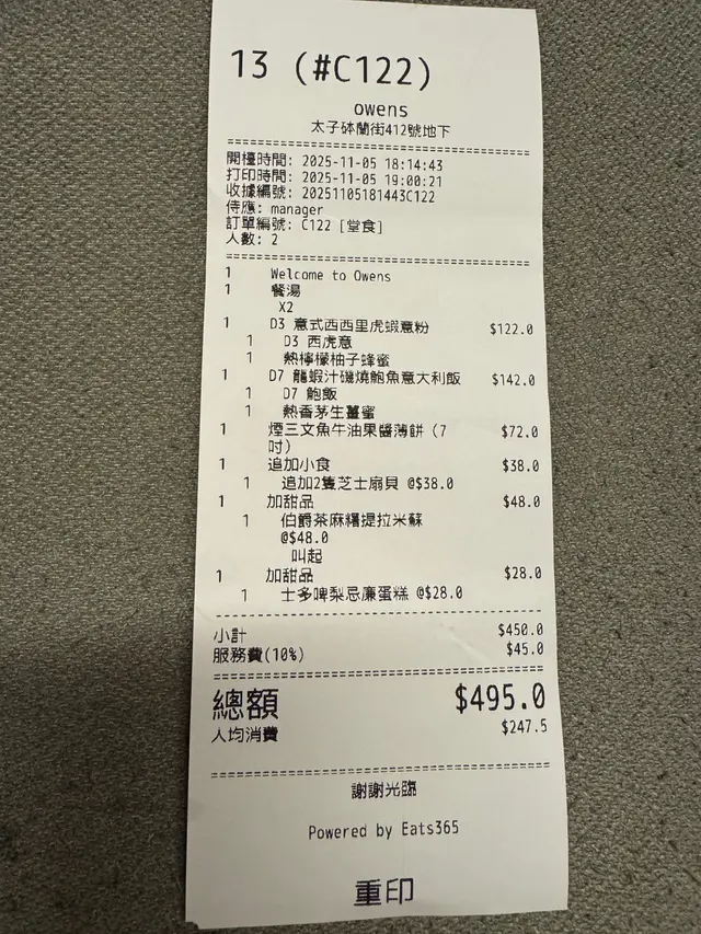 Owens (砵蘭街) (太子) 网上订位享特别优惠并赚Rice Dollars 网址: https://s.openrice.com/QrLS0kguB00 地址: 香港太子砵蘭街412號地舖 电话: +852 92089190