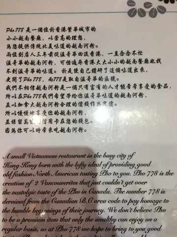 这个可能是全港,加拿大,越南最差的餐厅!!!THIS IS BY FAR THE WORST PHO RESTAURANT I HAVE EVER BEEN TO IN CANADA, HK AND VIETNAM!!! It is a complete rip off eating at this restaurant! Food:The pho is absolutely terrible! * Soup base - It is very watered down and have zero contribution to the pho. * Beef - The so called angus beef had very high content of fat. Unless they have upgrade the angus to kobe beef, I am not sure how could it be considered as premium meat. * Noodles - Quality of the noodle is only so-so* Drinks - I ordered a chinese rice water drink. It tasted like soap! YUCK! * Veggies - for additional $15 I got 4 pieces of chinese lettuce...Impressions: I walked in at 6pm after work and behold, one of the staff is sleeping on the dining table. She did not bother to move and continue to sleep for the next half hour. What a great way to welcome your customers! Service: When it came to ordering food, the waiter did not bother to walk up to my table to take the order. He made me yelled over other customers so he can conveniently input the order in the computer. Talk about laziness! Hygiene:Hygiene is very poor! The waiter wore rubber gloves and he had it on to handle everything! That included food, money and dirty dishes! I am so lucky to not get food posioning from this place! …查看更多