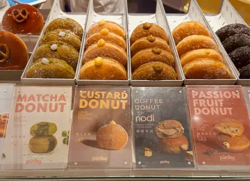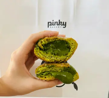 IFC City super门前有一间孖辫女孩pinky bakery~ 里面的贝果、甜甜圈冬甩,松饼看著都很诱人😍立马试试🤗🥯闻上去香喷喷的~捏起来很松软,面包切开气孔均匀而细腻,咬下去又带著一丝嚼劲,与之相反的是donut内里都可以爆浆流心😍,特别丝滑,整体味道甜度刚刚好,微甜而不腻😋👏🏻💓海盐焦糖冬甩外层脆脆的焦糖,很甜香,顶上还有一个巧思搭配~ 伴有一点海盐,既有甜蜜的满足感,又不会让人觉得腻口😋吉士冬甩浓厚的吉士酱流心令人惊艳,不用放进焗炉都可以🤩 仿佛每一口都在释放著香浓的奶香,要去试试~🥰黑芝麻冬甩很独特的风味,黑芝麻的香气浓郁,上面还有椰子蓉,还有淡淡椰香,一口咬下去流到我手指都是黑芝麻酱🤣抹茶冬甩平时我就很喜欢吃抹茶相关的食物,这个京都宇治抹茶🍵,抹茶味浓郁,齿颊留香 🤩