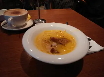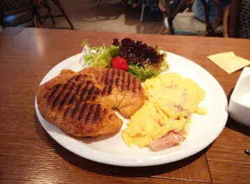 突然心血来潮入来赤柱走走,上一次好像已是两年前的事了,光阴似箭,时光飞逝 !不到一个小时,已走均半个赤柱,虽则没仔细看,但感觉和之前相差不多,主要的改变也是餐厅居多,至少美利楼其中的一间西餐厅已结业了。走来走去,最后选了这间餐厅。餐厅的客人主要是香港人,不像旁边的 coffee shop,外国人居多,还有他们的狗狗,这间餐厅感觉比较本地化。餐厅装潢走简约化,舒适又宽敞,没有二手烟,一切也好舒服,如不是赶时间,确实可以待大半天。价格在这区来说算是便宜,两个人加起来只需 $110,在外面点过 fish and chips 也超过这个价格,不过一个茶餐厅食物又不应与酒吧相提并论, 但若是环境比较,这里也胜过外面一些餐厅。套餐有 omellet , 意粉,加一杯朱古力, 老公另加了一杯水蜜桃。感觉像茶餐厅的常餐,当然在雅致的环境下是有不同。牛角包烤得好脆,热滕滕配上 omelet 加伴菜,omelet 不会煮得好干,湿湿地咬感正,入口即溶。朱古力有点淡,当然比不上我喜欢的 Pacific Coffee。总括而言,这间餐厅价格大众化,环境舒适,下次再来也会光顾。…查看更多
