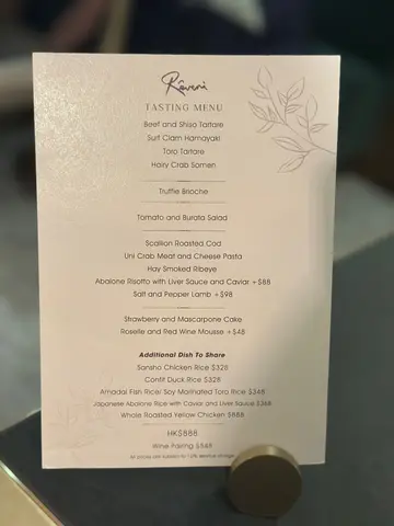 想试很久的Casual fine dining - Rêveri在上环得孖沙街低调到一不留神就会错过入口开放式吧台飘著烟熏香 昏暗的暖光营造出浪漫的氛围感Tasting menu晚餐只要$888!每一道菜都精致得像艺术而且超好吃!🍞 Truffle Brioche - 招牌菜!车打芝士铺满表面底下是火炙北海道带子和松软的蜜糖牛油Brioche加上葱油香味咸甜交织,好吃到想追加两份! 🔥 Hay Smoke Ribeye淡淡熏香缠绕牛扒肉质鲜嫩 🐟 甘鲷鱼釜饭 - highly recommended 鱼鳞炸炸得酥脆立起,鱼肉嫩滑 搭配海胆+鱼籽+金箔掀 鲜味十足🌊 每口都是奢华 🌶️ 辣味带子意粉辣椒油香而不燥! 肥厚带子煎出焦糖脆边 意粉软硬度刚好 吸满油香✨试了3款甜点都很惊艳果然法式甜品is the best 特别推荐tiramisu千层酥难得从前菜、主食到甜品都很精致&出色价钱又合理 是近来吃得很满足的一餐❤️…查看更多