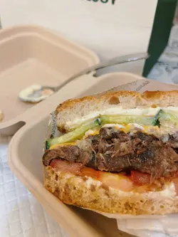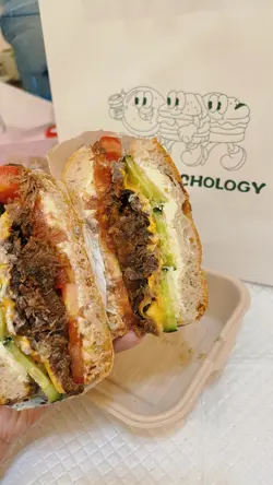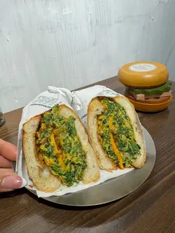 咁啱经过,突然间心血来潮入咗去试。同好朋友一人一款拣好咗之后就等食。首先系:厚蛋芫荽芝士三文治芫荽都多嘅送上枱嘅时候好香茜味。但系蛋量唔够🥹本身期望厚蛋就应该会好厚实嘅感觉,但食落就因为蛋量唔够包实啲芫荽,所以食落就好容易碎晒⋯⋯成枱都系芫荽碎,如果加多啲蛋会更好!呢个芫荽三文治配咗越南法包🇻🇳好脆好香,入边仲夹咗蕃茄酱同埋花生酱,食落感觉好正😆另外仲叫咗个:慢煮鸡腿扒菠萝三文治配🥯 Bagel ,bagel 好好咬口,烟烟韧韧,配上慢煮鸡腿扒,食一个系真系会好饱👍🏻👍🏻值得一赞鸡腿扒好有鲜鸡味(肉质超滑超滑)「完全冇冰鲜雪藏味好好味」夹埋菠萝咁样食,真系几过瘾❣️仲叫咗☕️(ice)桂花酒酿拿铁$50呢杯好特别推介大家试吓😝总结:我觉得呢度嘅面包配搭,真心唔错👍🏻👍🏻👍🏻健康又好食❤️如果有埋蛋白饮品配埋一齐eg:一个餐咁买🥯+🥛(健康蛋白餐)咁就可以成为尖沙咀gym L嘅饭堂恩物💘…查看更多