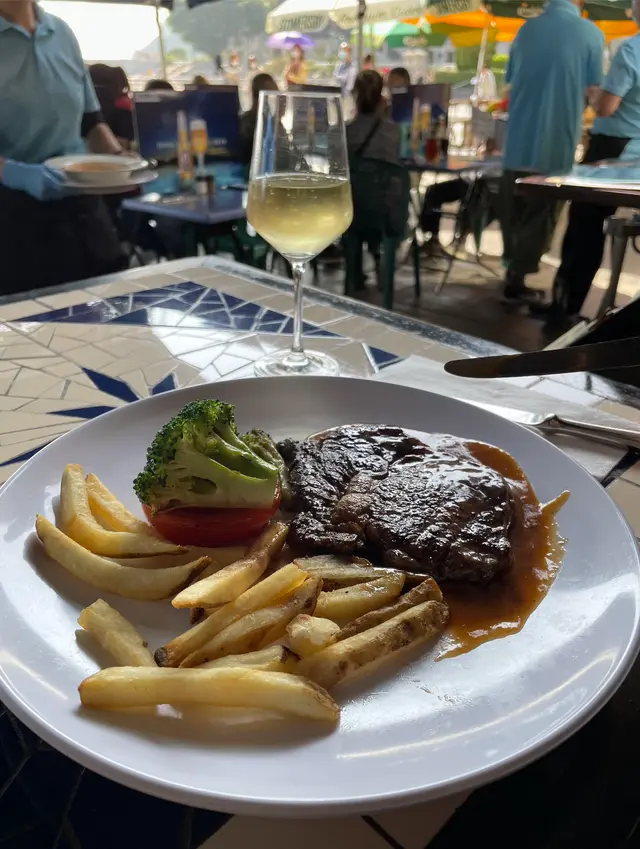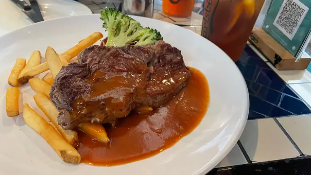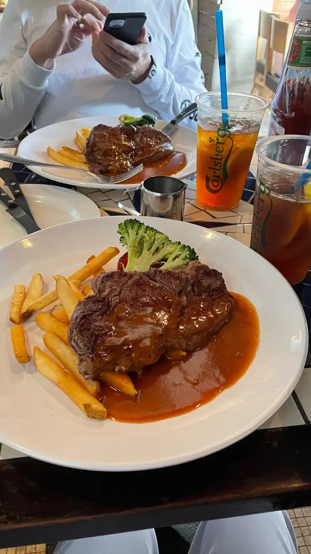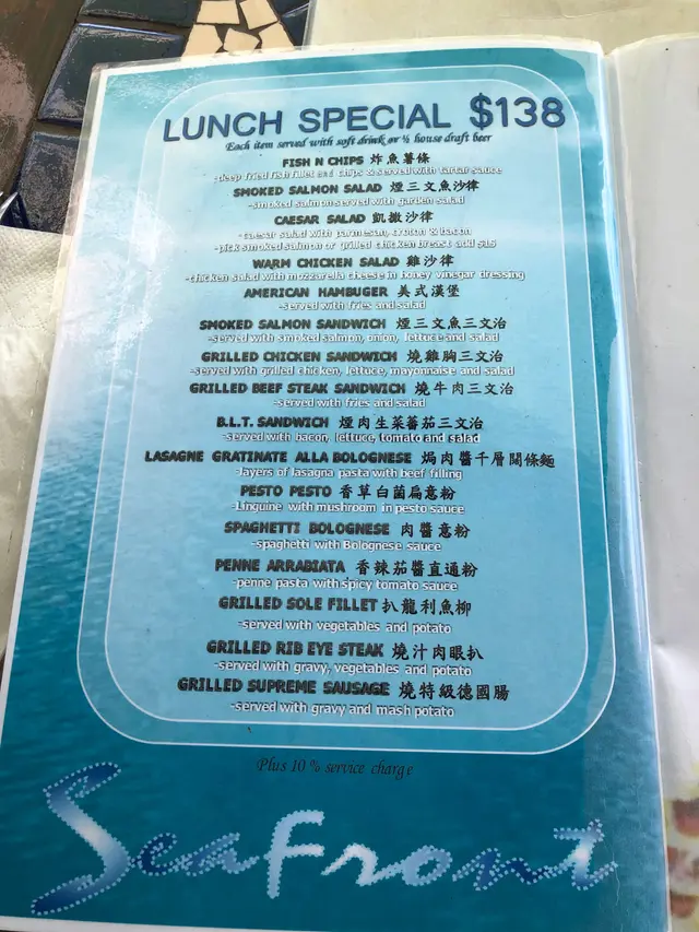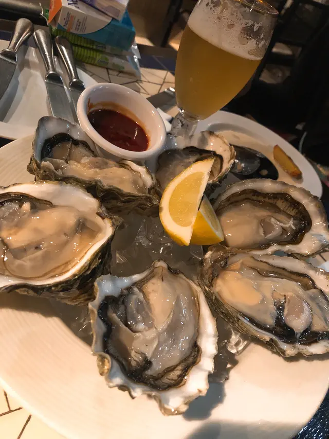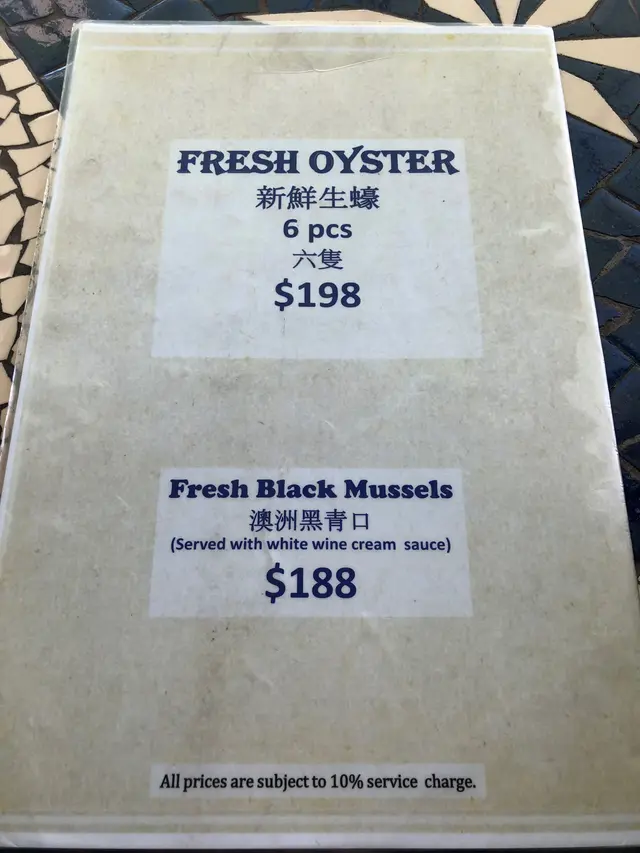 沿著海濱行一圈才決定幫襯那間食肆,見第1店陰暗白光、靚女洋㜢三隻黑狗、第2店西餐格局叔嬸侍應多國菜、第3店美餐裝潢墨西哥菜加美國菜、跟住仲有薄餅店、土耳其卷、傳統西餐。最後決定第2店,竟然只係普通港西餐質責,免強入得口的西餐。Asahi 朝日生啤,對日本生啤情有獨的,新鮮清爽。龍蝦湯,粗糙鞋口不幼滑,濃得來有點咸帶點濁。崩口人忌崩口碟,食具爛左崩左就唔好比客用,真係好肉酸,影響食慾及形象。蘇格蘭石蠔,五隻鮮一隻腥,六選一都給我挑中唯一充滿腥味的。生蠔溫度不夠凍,室溫微暖,沒有先浸冰水嗎?蠔肉軟綿滑滑多汁,海水咸度清淡,沒有界開帶子位食得不方便。蒜蓉炒白菌,白菌在那裏?餐牌寫的是炒白菌但來的是炒雜菌,大家都表示失望﹗雞髀菇秀、珍菇、冬菇,味道蠻不錯,雜菌富彈性,菇味芳香。何解配蒜蓉牛油法包呢?凍冰冰又鞋又韌,法包夾雜菌食?有點格格不入。燒羊鞍,鬆肉粉腍啤啤羊肉,豪氣地整塞入再整支抽出,骨肉立即分離,肉只留在內不留在外,啖啖肉滑嘟嘟十分滿足,食不到任何羊羶味道。紐西蘭牛柳扒 10 安士,迷你一舊仔疑似不足10安士。溫柔地鋸開品嚐,質地偏乾帶血水像極湯渣的口感,希望滾上大量燒汁可以挽回一點分數,濕濕地嘴嚼感覺好多了,爽脆鮮甜翠綠的西蘭花比羊鞍比牛柳更美味。香辣蜆肉意粉,蒜蓉辣椒味道未見突出,反而白酒澀澀的味道略為強烈,已滲透蜆肉㤂意粉中。意粉質地一流,結實彈牙滑滑的,新鮮白蜆夠肥美亦帶鮮帶甜。意粉烹調高質滑彈嚥韌,完整長啜長有,大大注拖著微澀蒜辣白酒汁尚算可口。…查看更多