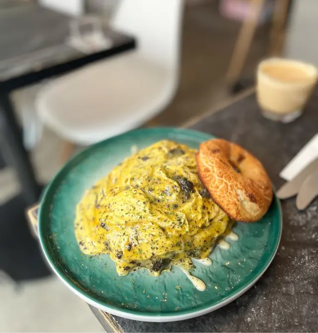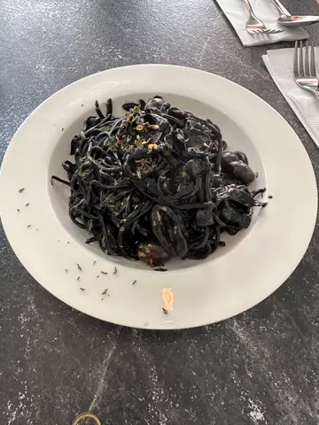 第一次黎呢间Cafe食野 系Open Rice见到好似都唔错今日同同事就去左试下。我叫左个墨鱼汁鱿鱼意粉加一杯生椰荔枝咖啡 计埋加1 $173 个意粉第一啖食落去觉得好好味 可能佢地用既意粉系蛋意粉 同平时系出面食到既有d 唔同 我自己就几钟意。不过同事就话食唔惯。铺头唔算好大不过都坐得几舒服。如果下次再黎会试吓个黑松露蛋Bagel 另外除左个意粉好食 Cafe入面个女店员都几靓女 哈哈!…查看更多
