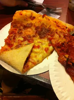那一晚我们去了尖沙咀睇rubber duck ,其后我们去了亚士厘道的Tectonic Pizza 食番过大的pizza ,虽然正在都是6时几但店内已经坐满了不少客人,也是先付费及点order ,而食物做好后会有店员送到我们枱上,餐具都是放在cashier 旁边的柜内,客人可以自行取餐具。店内的装潢都好简单的设计,有点似外国的美式pizza 店,好旧式及平民化的感觉,地方不会太大,店员都是而说英文为主,不过有一位男店员都识讲广东话的。枱上已经放了一些调味料,例如有tabasco 、辣椒干、芝士粉......都好齐备。与男友商议后我们就去了买pizza ,24 吋 Tectonic Pizza 真是好大块好巨型,当然不会order 一个,我们每人order 一片Tectonic Pizza,我点了个vegetarian slice而男友点了个Pepperoni slice。而Pepperoni slice $31而里面的材料是有Mozzarella Cheese、Marinara Sauce及辣肉肠。虽然材料都是好简单,但mozzarella 的淡而不腻的芝士香,加上了微辣而咸香的辣肉肠真是好夹的配搭组合,饼底不算是好薄又不会好厚身,pizza内层口感似面包的软熟程度,而外层都带点脆口。此外vegetarian slice $42 的材料真是非常丰富,有黑水榄、粟米、菠菜、蕃茄、洋葱、彩椒、白菌、Marinara Sauce、 Parmasan及 Mozzarella Cheese。后来点了两罐汽水分别是coke and fanta orange 都是$12一罐。buffalo wings (6pcs)$55 水牛鸡翼的味道偏辣,好有tabasco 的味道,一个order 有6 件。外层都非常香脆,更是刚好炸起,而且鸡翼沽上了的hot sauce 都够酸够辣。其实我不是好习惯食太辣,所以有点劲辣的感觉,都真是几惹味。Potato Wedges $38 一份的portion 都不少,更是即叫即炸,外脆内软,薯不简单真是好食。