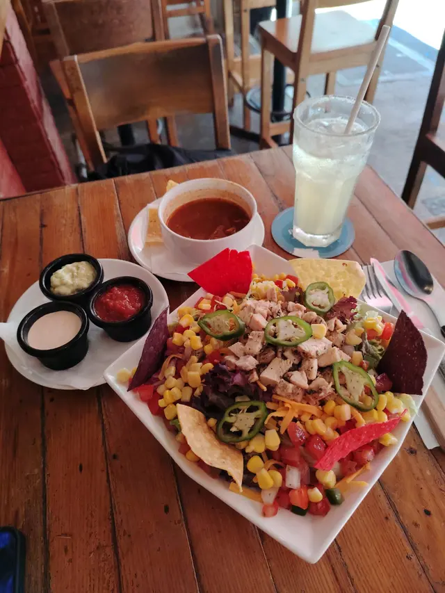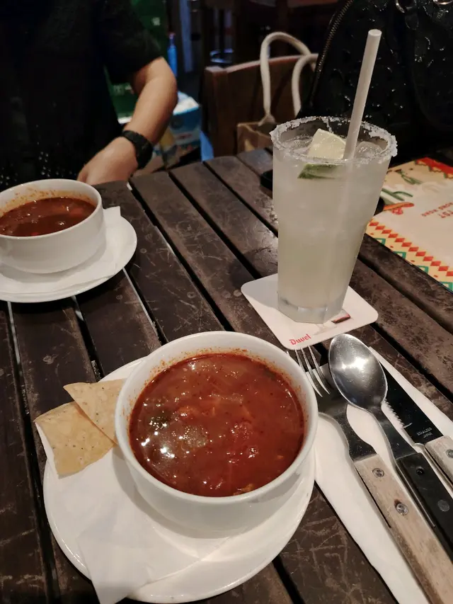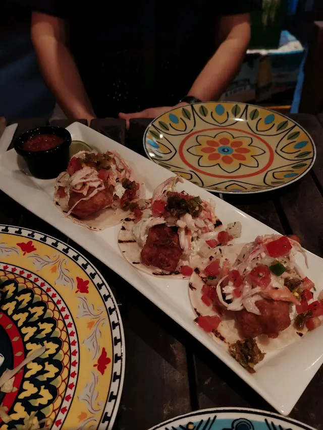 🤗這間餐廳已經成為我尖沙咀Lunch-to-go list之一,隨便點一樣都好吃。今天點的餐湯,還是一樣多菜少辣濃茄湯,不要湯可選沙律。餐飲是我的最愛Margarita✨😍本來想吃點簡單的,點了Burrito,一上桌是叫人吃驚的大份量。芝士蓋面的卷餅,配以拌碟的牛油果醬和辣茄醬。點的雞肉卷,卷入面滿滿的黑椒雞肉粒丶芝士丶蔬菜,而且食材熱度後足夠,面層的芝士除了香氣還維持卷的外形不鬆散。Fish Tacos! Taco餅上放滿洋蔥和蕃茄粒,炸魚肉配上酸咸的青瓜沙律醬。香煎厚豬扒配辣椒炒飯,豬扒煎的熟度剛好,多汁有肉味。炒飯很香,配合辛辣的辣椒一起炒,很惹味✨…查看更多