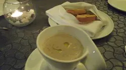 汤点了白松露汤,香浓磨菇渗出白松露香味.主菜拣左澳洲和牛胸膈膜,见几特别菜色,待应推介食4-5成熟.爽中有弹性口感特别,香浓牛肉味有别于食牛扒那种感觉,都几特别.