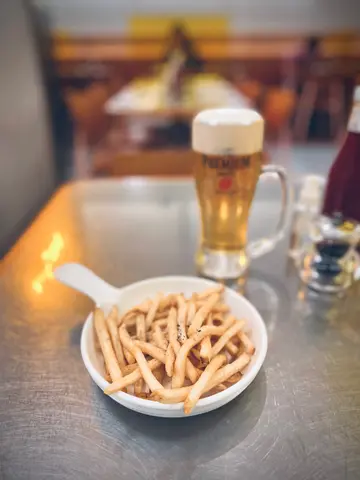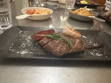 之前一直想试这间专食牛的餐厅.装修简洁有清新风格.今次下午茶时间来试.因不用排队.入去只有2枱人在用餐.自助scan code 点餐.颇方便.落单后很快就送上薯条.望上去样子冇特别的.但入口有惊喜!不知何解,会有黑松露的味.很特别呀!之后送上一杯伯爵茶包茶.及一杯cream soup.好味的.好快就送上牛排.好满意因为见到如我所叫的.真系5成熟,卖相也可观!有焗蒜头一个.好好味!$185来计,牛也算不错的!可惜.所有嘢上得快.凉得快!凉了就冇咁好味了!另外不满意是食完的碟大半场时间都冇下收走,服务上可以改善吓吧!…查看更多