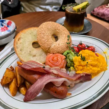 跟朋友过嚟食,因为星期日同埋食饭时间,所以都要等一阵位。叫咗个烟肉&烟三文鱼Benedict 同 pineapple long black ,咖啡冇太大惊喜,咖啡味唔系太重,但系Benedict 完全超出想像,卖相超靓,面包超脆,同个蛋黄酱同蛋好夹,食落去完全唔会太干/太油,三文鱼都好新鲜好嫩,有少少咸,但系配住面包啱啱好,唯一唔系咁满意嘅就系个烟肉煎得有啲太硬,系好脆嘅,但系个人钟意软返少少会同成个benedict 夹多啲,依家会有啲太跳…查看更多
