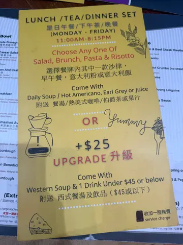 呢间太子chill chill cafe嘅好多菜式都好吸引🤩 ☕️ Creamy Portabello Mushrooms 🍄🟫松露油忌廉大啡菇猫耳朵🍄 $99 (8/10)我几钟意食猫耳朵意粉😻烟烟韧韧又挂汁😋松露油忌廉汁唔会好腻,加埋烤过嘅松子仁同芝士粉,真系好多层次又美味🤤☕️ Creamy Baby Scallops Risotto 🍛牛油忌廉汁带子粒意大利饭 🧈 $103 (8.5/10)呢碗牛油味超足!意大利饭粒粒分明好有口感又挂汁🤤带子粒烤得入味,因为有好多粒所以好满足🥰但食多偏腻,建议同人share食🙌☕️Pineapple Juice🍹(8.5/10)套餐送免费饮品或餐汤👍菠萝汁清爽解渴唔会过甜🫶🏻☕️Lobster Soup 🥣 (7/10)龙虾汤超级浓稠🦞似淋落意粉嘅酱汁多过汤😆☕️ Deep Fried Potatoes with Cheesy Black Truffle Paste 🍟 芝士松露酱香炸薯角🥔 $73 (9.5/10)薯仔控一定会好钟意❤️颇大份,系比较适合多人分享嘅sharing plate 🍽️ 薯角炸得好香脆,内里系绵密嘅薯仔好好食😋仲有大量芝士同黑松露真系超级邪恶👿其实唔加酱都已经够好食,唔想食酱的话可以叫纯炸薯角架!💛🖤仲有其他菜色都好吸引,系绝对值得二访嘅cafe🩷…查看更多