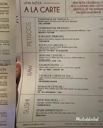 You wouldn't want to miss your LAST opportunity to visit this restaurant! Being Hong Kong’s first Brazilian-Japanese Restaurant & Bar, Uma Nota would be closing down on 21 June 2025. 👋🏻 All of the dishes were so good and portions of the main dishes were surprisingly large! ♥️♥️1️⃣ Dadihnos De Tapioca $78Brazilian tapioca and cheese dice with sweet chili sauce. I find Brazilian cuisine really intriguing - these little dices remind me of tapioca puddings with hints of cheese. Never tried something comparable before. 🇧🇷😱2️⃣ Hamachi Ceviche $188Wasabi tiger milk avocado cream, tempura flakes, tobiko. The sauce was impeccable and it was so fresh! 🎏3️⃣ Amazonian Duck Rice $218Smoked duck breast, tucupi rice, sansho pepper mayonnaise, vinaigrette. Huge pan of rice which serves two. More of a risotto rather than a paella. The rice was so creamy and it has fully absorbed the flavours of the duck. Some parts of the duck was slightly burnt to give it a stronger aroma as well. 🥘…Read More