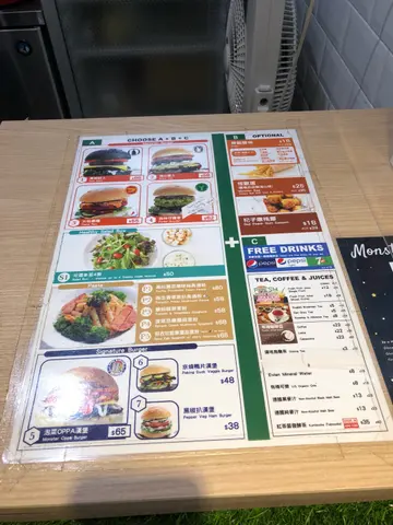 中上环区系一个人间炼狱租金贵 又人多往往好多比较好食既餐厅都大排长龙连又贵又吾好食既茶记 都有人排队所以今日就为中环打工仔介绍呢间好食过麦记但又价钱公道既餐厅首先 排队时间近乎零其次 根本无位你等 悭番等完位先点餐既时间最后 其实佢都只系38-68蚊一个汉堡其实同茶记一个炒饭差吾多价 但就可以快快手拎上公司一边做野一边食至于食物质素方面我就觉得好好味我就叫左个黑包黎食我一路都以为系牛肉点知朋友话 一睇d纹就知吾系牛咁讲即系 其实素食黎讲 佢做得吾错不过其实块「牛」边位系比较干身呢个系我朋友叫既佢话好味过老麦质素不太劣以上系餐牌 大家可以睇睇有无野岩自己食另外顺带一提 佢饮品跟包系free 包括Pepsi and 7up整体黎讲环境无得评 因为take away服务就麻麻地 因为店员只识英文食物质素 中上价钱 中等性价比中上
