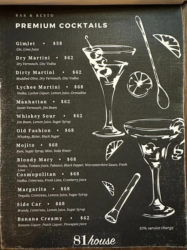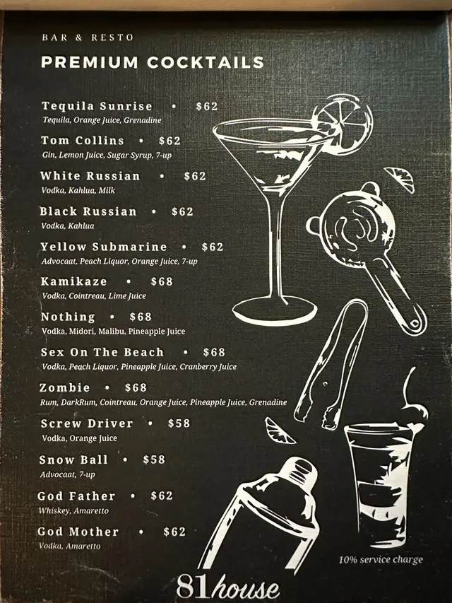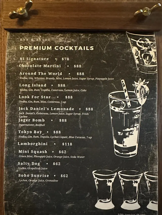 除了前菜、主食、甜品外,這裡還提供不同酒精類飲品,包括cocktail、啤酒、威士忌、烈酒、紅白酒等等等等