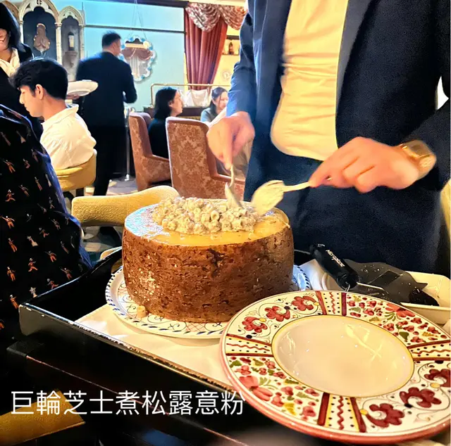 2:巨輪芝士刨松露,侍應直接推個巴馬臣松露芝士🧀出黎,視覺上非常吸睛,倒入意粉之後就係入面攪拌,再加多上Parmesan cheese 係面,最後再將新鮮嘅松露刨落去,無論係視覺,味覺,儀式感上也一流,而且將松露同芝士混合,令到成個意粉口感非常豐富,另外一提呢款意粉叫 #tubetti ,餐廳亦都係純手工製造,出面好少機會會食到,所以口感偏硬比較煙靭👍🏻