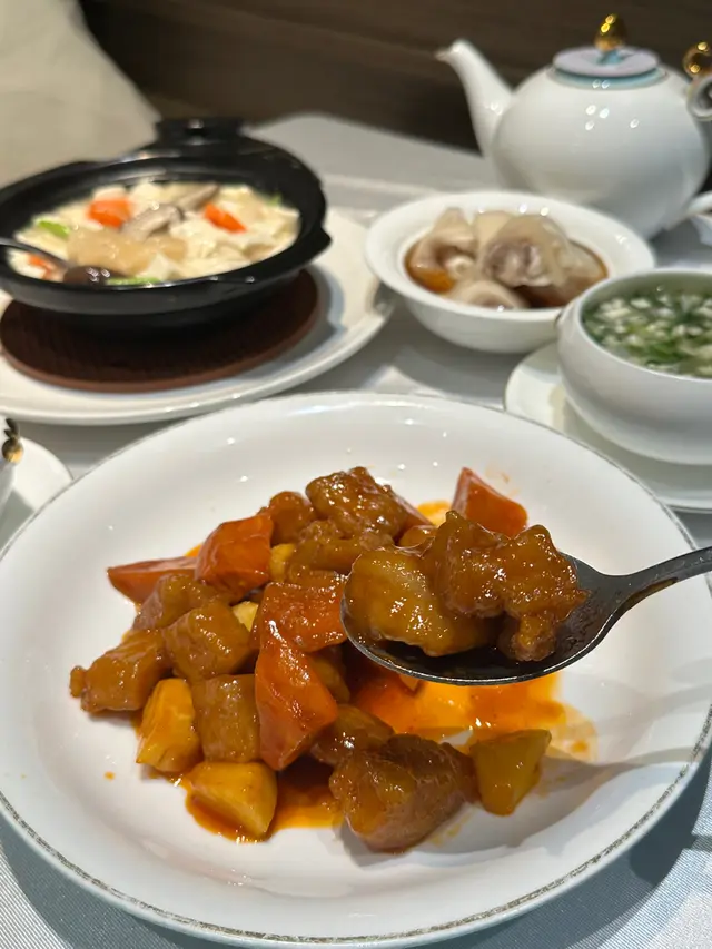 糖醋金薯咕嚕肉賣相誘人,味道酸酸甜甜,豬肉粒肉質鮮嫩,非常可口🤗