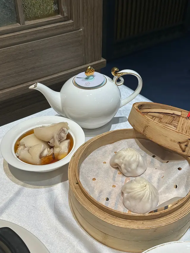 另外竹笙蝦仁豆腐煲份量十足,口感爽蛋,味道清甜順滑易入口~招牌小籠包即叫即蒸, 皮薄餡靚,超多汁好juicy,咬落湯汁爆哂出黎,豬肉餡滑身唔肥膩🤤最後仲包個雞煨麵,認真飽肚😙