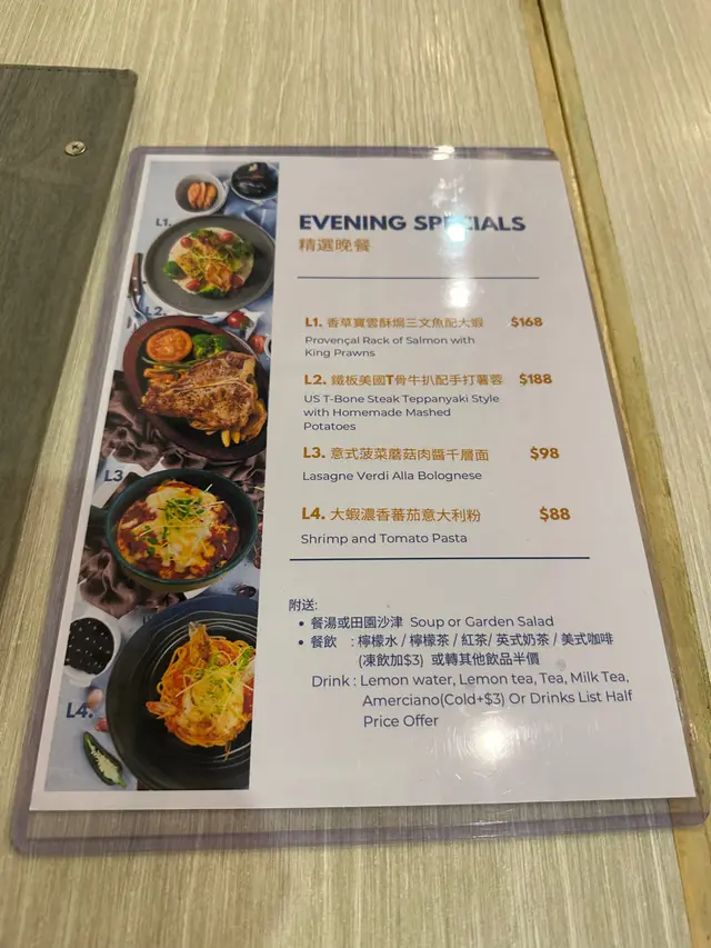 (包沙律或湯品,指定飲品)