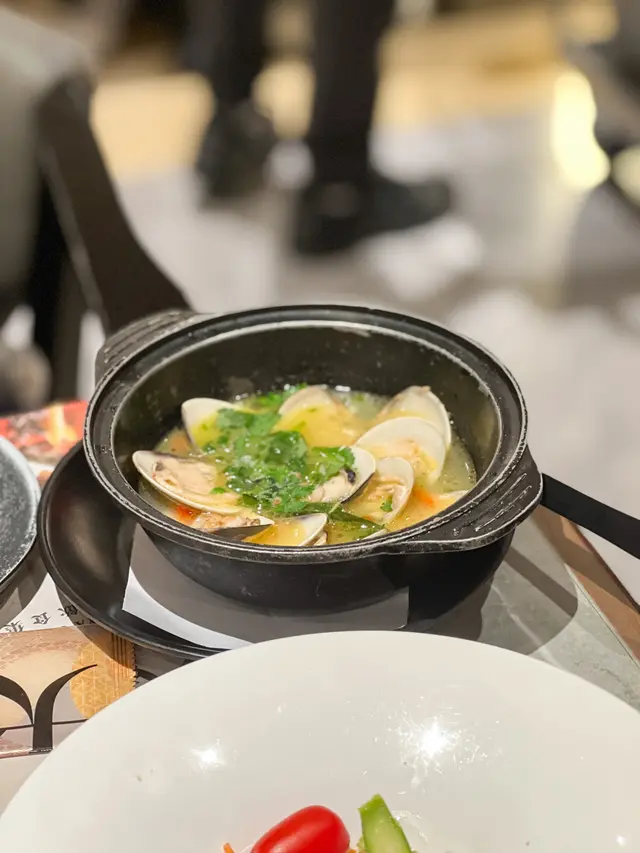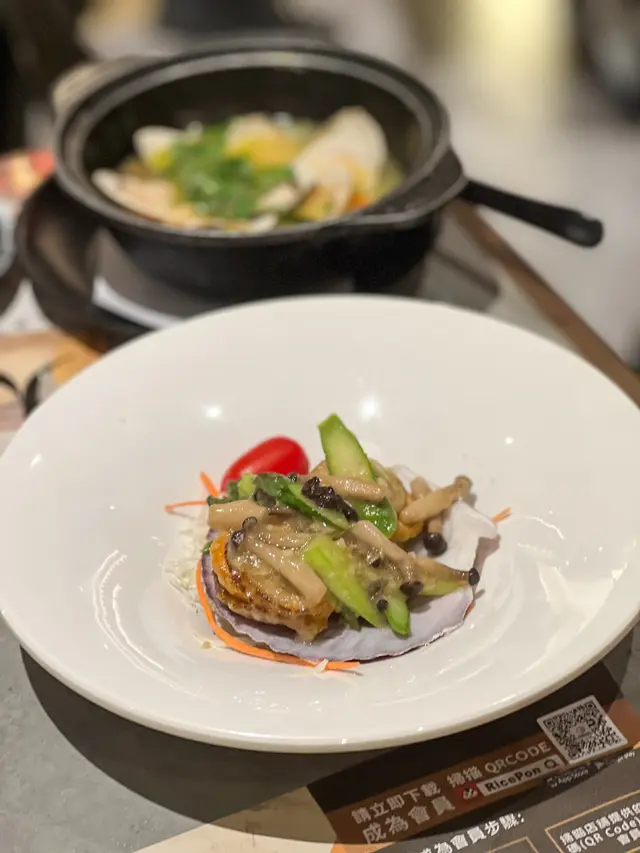 鐵板共有3款選擇 有黑松露牛油帶子、黑椒牛柳粒同鵝肝多士 牛油帶子配菜有蘆筍同菇 重黑松露味🥰鵝肝多士好厚身 充滿油脂感 另外叫左個香草大蜆鍋 肉質肥美 幾入味