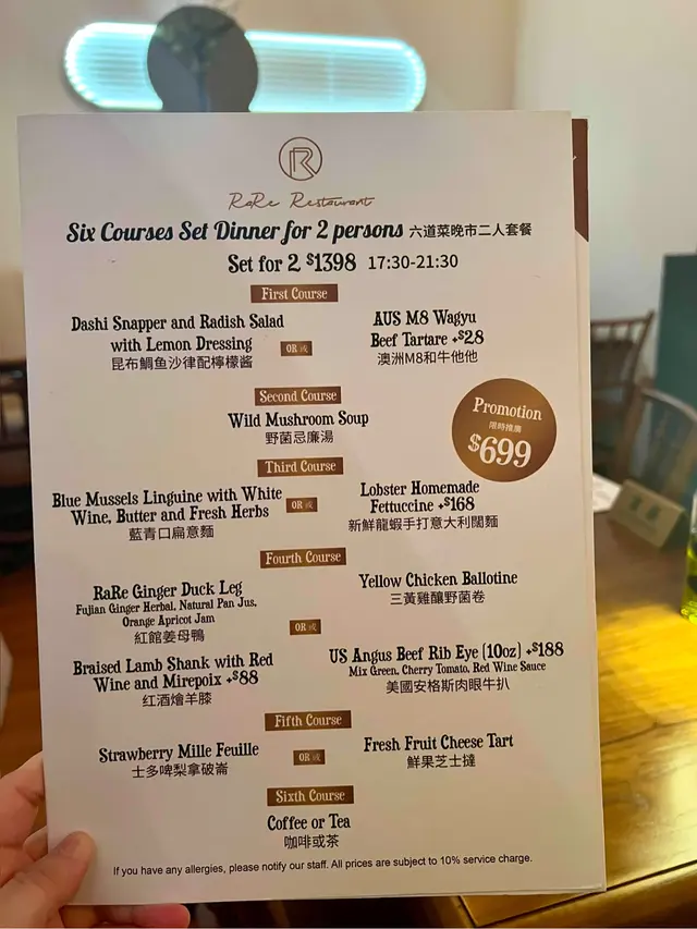 呢度嘅法國菜,係由法國藍帶廚師主理,夜晚「6 Course Set for 2 」近排搞緊優惠~$699 就可以食到😌