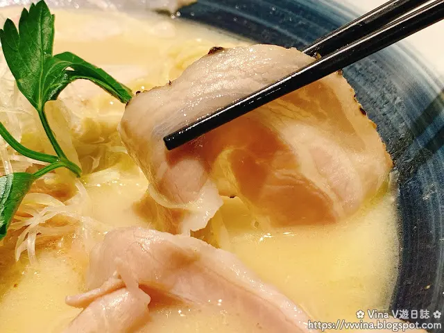 淡黃色的湯底由日本米鴨、京都丹波地雞,以及40多種味噌等熬製而成。一喝下去,甘醇的雞香味充斥著整個口腔,完全沒有油膩感,更沒多餘的味精,簡單是一大享受~~