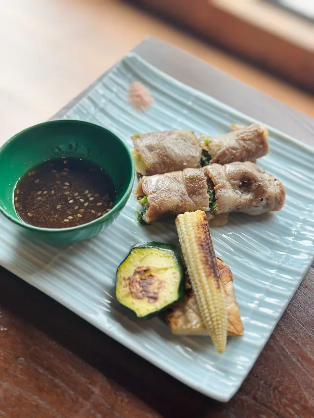 日本豚肉🐖:油花均勻,師傅鐵板急火煎至微焦邊,肉汁鎖得住!沾特製蒜蓉醬油一絕🤤