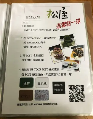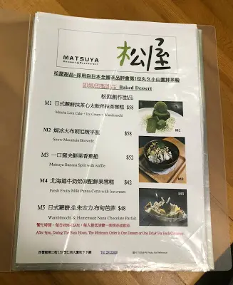 店名叫「松屋」,帶日式風格,果然,主打的就是日本口味的甜品,抹茶元素一定少不了。店家原來也供應主食,午飯和晚餐時間也可以吃和風便當,下次來可以一試。