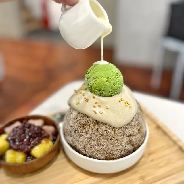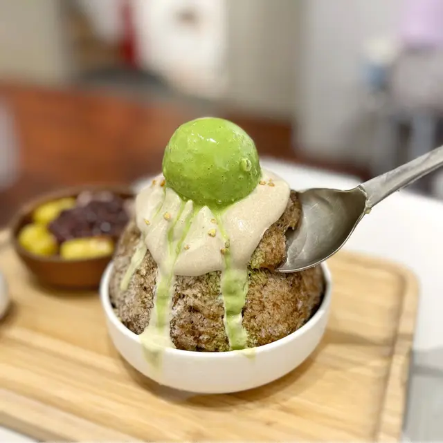 最上層嘅抹茶雪糕,濃郁香甜,好重茶味🤤中間嘅焙茶奶蓋,順滑醇香,再加埋下面嘅雪花冰同嫩滑嘅仙草,完全係一個夢幻組合🤣雪花冰夾雜着仙草絲好特別,淋上煉奶簡直一絕!