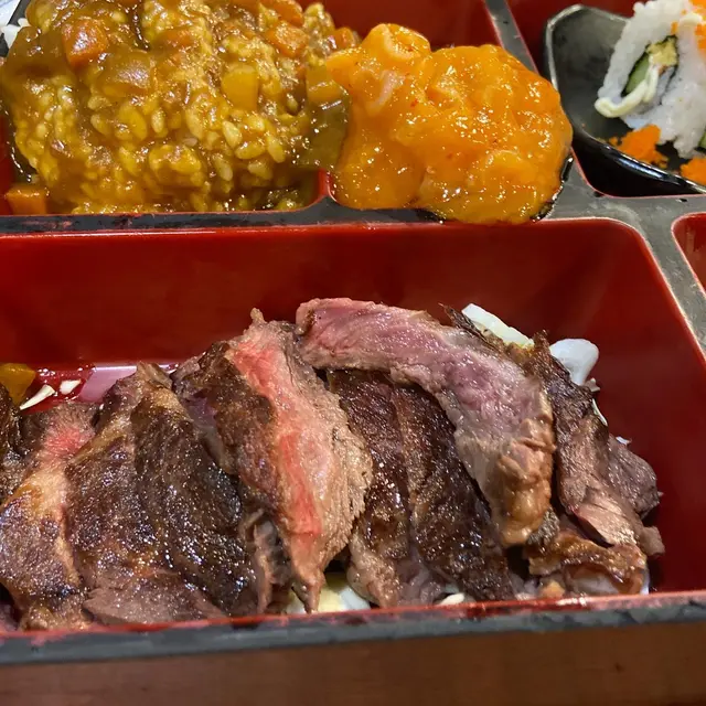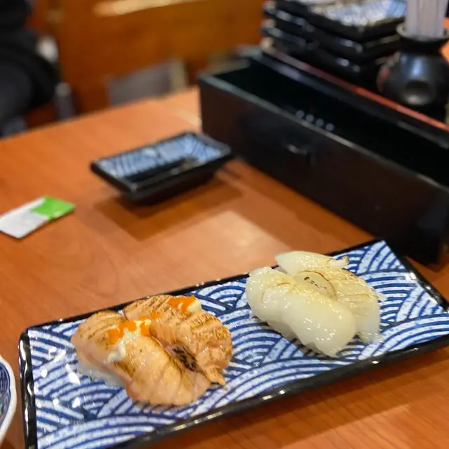 因為今日唔算太肚餓,所以就淨係嗌咗一個便當同幾款壽司,唔同便當都相當吸引!最後係金菇肥牛卷同鹽燒安格斯封門柳間揀左後者,便當嚟到時都幾有驚喜😋 一來份量幾大,唔同配料都好豐富,二來牛柳嘅質素真的很好,薄切嘅牛柳有微微嘅焦香,而且生熟程度調教得好好;另外燒豬頸肉帶微辣,口感較煙韌,都好好食,不過因為本人係牛肉🐄控,所以都係鍾意牛柳多啲!😝 咖哩飯🍛唔止多汁,仲要係珍珠米,口感更軟糯🤤 平時日本便當伴碟嘅味付螺肉都係得幾顆,今次嘅便當竟然放得滿滿,都真係幾有驚喜!