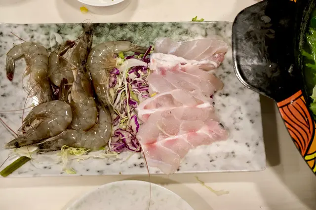 - 之後就到任食環節,海鮮餐本身仲可以點海蝦、脆脘片、龍躉片、極上牛肉、西班牙豚肉粒、黑椒豬肉腸等,仲有其他火鍋配料(響鈴、菜、雞件等