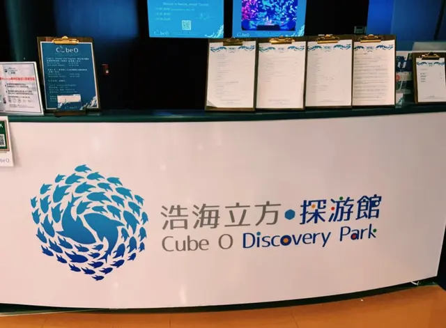 那天,朋友說要帶我到一家特別的餐廳吃飯,卻不肯透露有何獨特之處,說要給我一個驚喜。乘坐電梯上去後,第一眼看到,還以為去錯了地方,「浩海立方.探索館」,不是一個海洋館嗎?連它的門口、櫃檯跟海洋館一模一樣,光看門面根本想像不到它是一家餐廳。