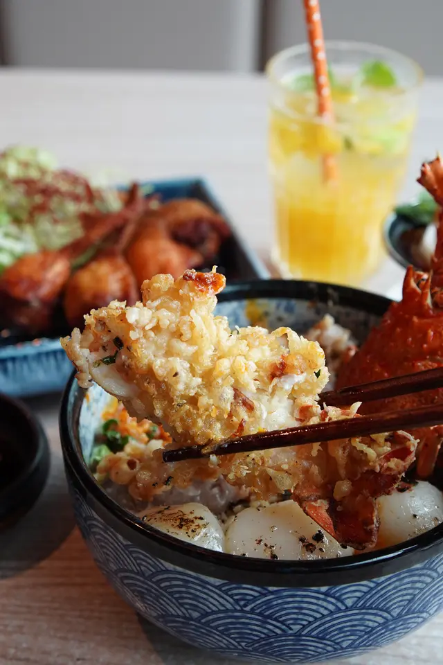 店內其中一款嘅招牌丼飯!以經過鰹魚昆布湯烹煮嘅米飯做底,面頭加上原隻澳洲龍蝦、極厚切炙燒帶子同大量吞拿魚蓉,賣相非常邪惡,絕對份量十足,一個人真心係會食唔晒架!