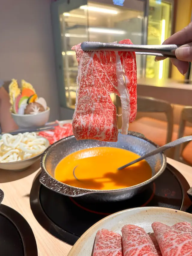 店鋪以木系顏色設計為主,裝潢簡潔而明亮,最開心就是一人一鍋,餐廳主打北海道十勝產黑毛和牛,涮涮鍋套餐均配有前菜和蔬菜拼盤,亦可以選擇烏冬或北海道米飯或拉麵,而且有甜品及兩款沾醬。