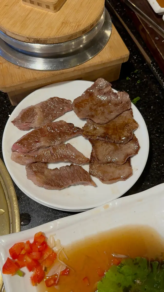🥩 包括調味烤裏脊、牛排、牛舌、雪花牛肉,全程有店員幫你燒幫你剪,超爽!