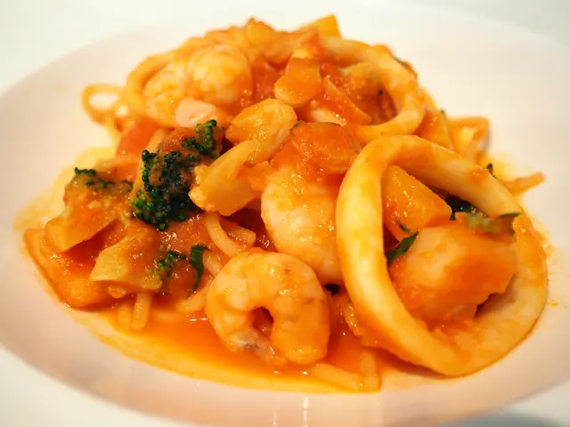 海鮮料很足 帶子 蝦 魷魚圈 而自家制的意粉 煙韌有咬口 吸飽了醬汁 也很滋味