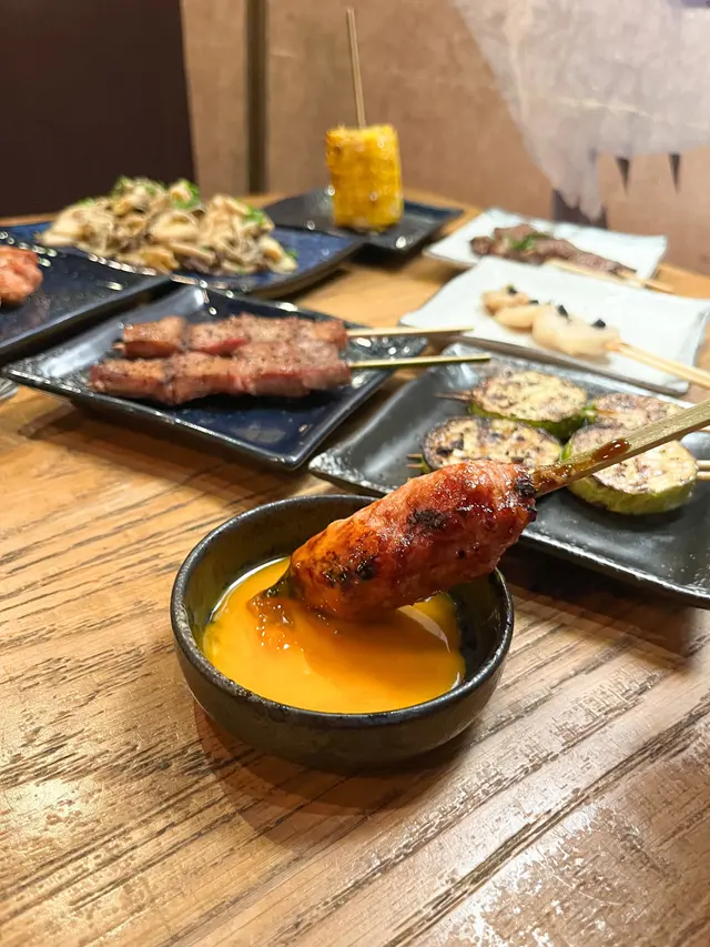 每次食日本串燒都一定會叫!雞肉柔嫰, 啖啖肉, 食到少少雞軟骨, 蘸上日本生蛋黃同醬油, 讓蛋汁融入雞肉當中, 食落更滑溜, 能提升口感層次!