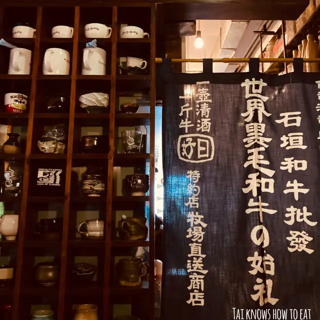 呼吸星球,除咗滿佈充滿昭和日本復古裝修,彩色玻璃,碎花懷舊窗簾,加上沖繩風獅爺裝飾配合反石垣島和牛主題,還有大量令人花多眼亂的懷舊裝飾,有吊扇、玩具、英女王相片、舞獅大頭佛、蓮花、單車等,好像置身於一間博物館。