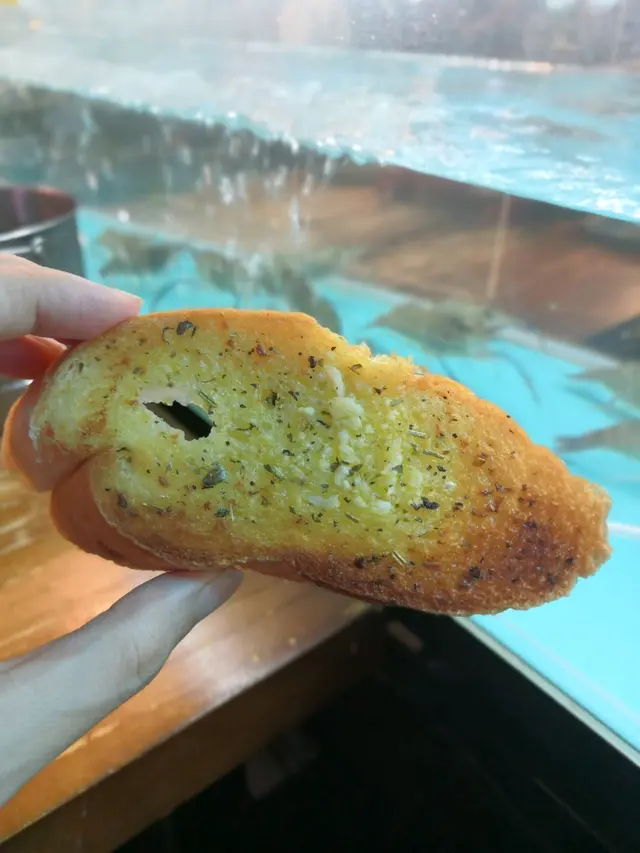 烤蒜蓉包有驚喜,入口很有香草味,有牛油香, 脆香可口,略為蒜蓉味不夠濃烈,但法包水準也不錯,我都追加吃了4塊,好吃到停不了口,哈哈哈哈。