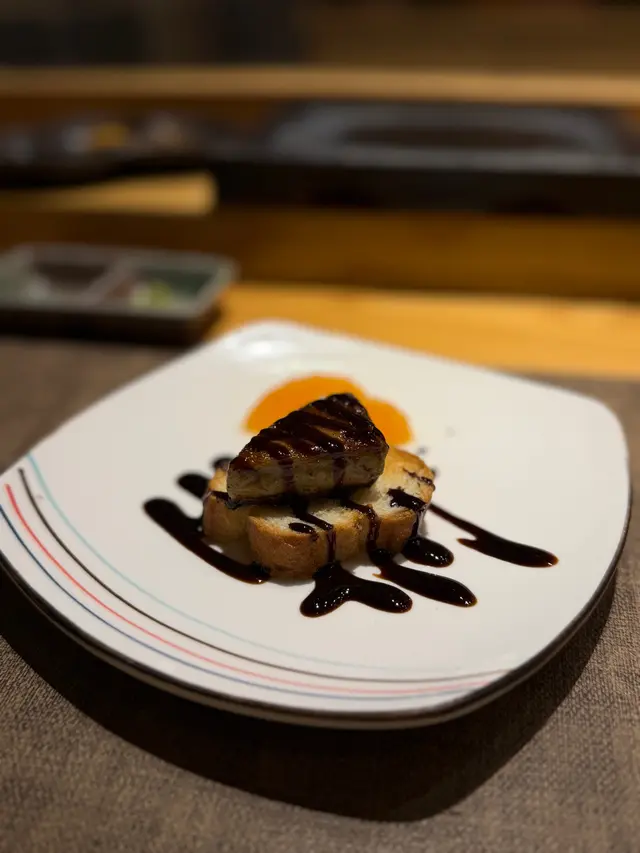 鵝肝配多士外表煎得焦香,內裡幼滑如絲,油脂在口中爆發,搭配酥脆的多士與解膩的醬汁。