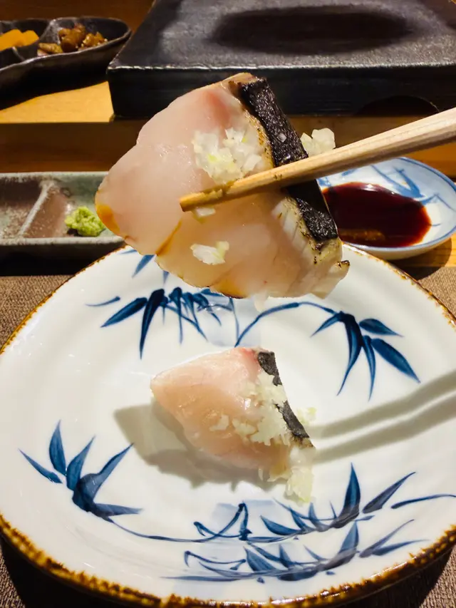 · 間八(琥珀魚)肉質緊實,口感爽朗,鮮味純淨。
