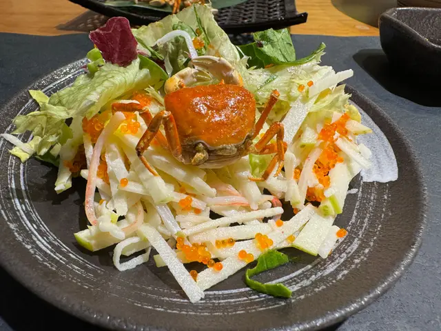 上面係爽脆蘋果絲、蟹柳絲、一坨蟹籽,