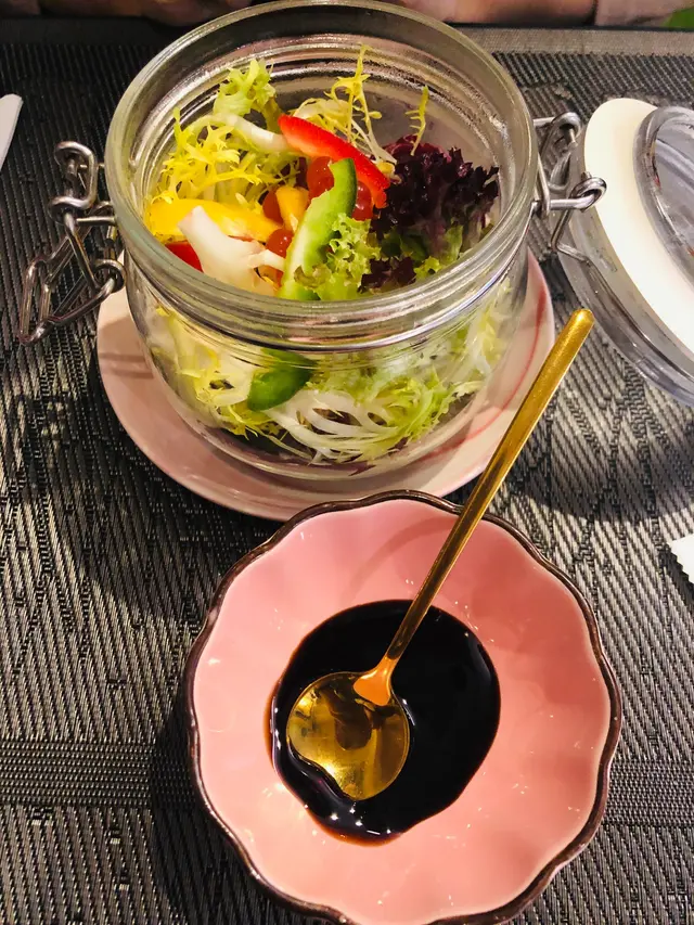 沙律上面加咗一啲類似爆珠嘅爆漿小珠,所以食落係香香甜甜酸酸,都幾得意。