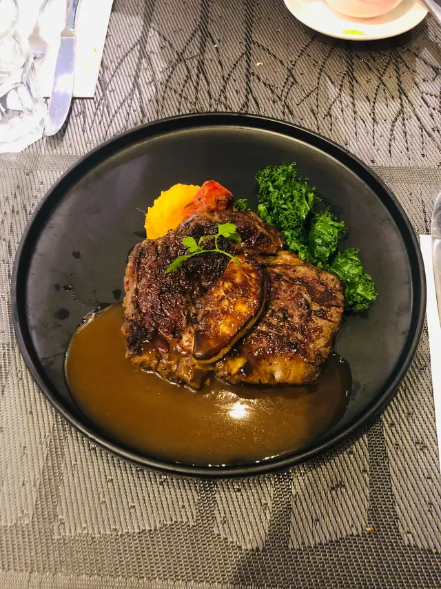 呢塊肉眼扒都相當多脂肪,肉汁Juicy,大廚嘅火候控制到啱啱好,五成熟又鎖住晒啲肉汁,所以食落都好鮮嫩,有外脆內嫩嘅感覺!