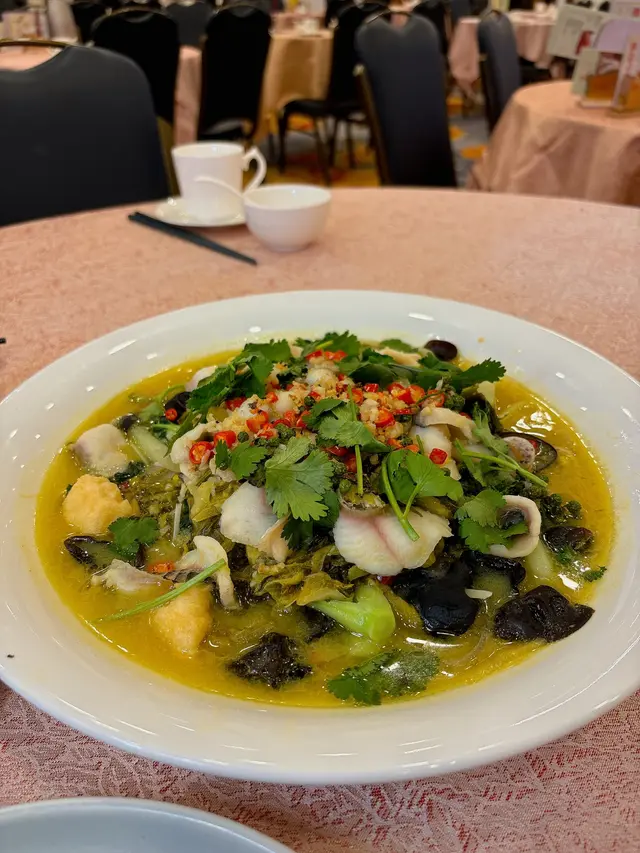 呢個酸菜魚真係驚喜!魚片切得薄薄哋,煮得啱啱好,入口即化。酸菜嘅酸味同辣味平衡得好好,唔會太嗆喉。湯底好濃郁,我哋仲叫咗碗白飯撈湯食,真係食到停唔到口。份量都幾足,三個人食都夠晒。🐟🌶️